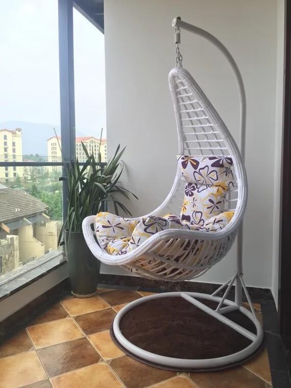 此外,内开窗还极易与柜门、吊顶式晾衣架等产生干涉。通常情况下,阳台会配备储物柜、晾衣架等实用设施。若稍不留意,可能直至入住之后,才会发觉窗户开启时,窗扇会与这些设施相互掣肘。 届时,可能会出现开启窗户时晾衣架无法降下,或者打开柜门时窗户无法开启等令人尴尬的状况。 阳台,宛如家中一方静谧的小天地,往往寄托着人们对休闲与放松的美好憧憬。许多人在装修伊始,便萌生出在阳台安置一把吊椅的想法,期望闲暇之时能坐于其上,惬意地沐浴阳光。 然而实际上,多数安装了吊椅的家庭最终都追悔莫及。那吊椅如同食之无味、弃之可惜的鸡肋,不仅无端占据了阳台的宝贵空间,且毫无实际功用可言。